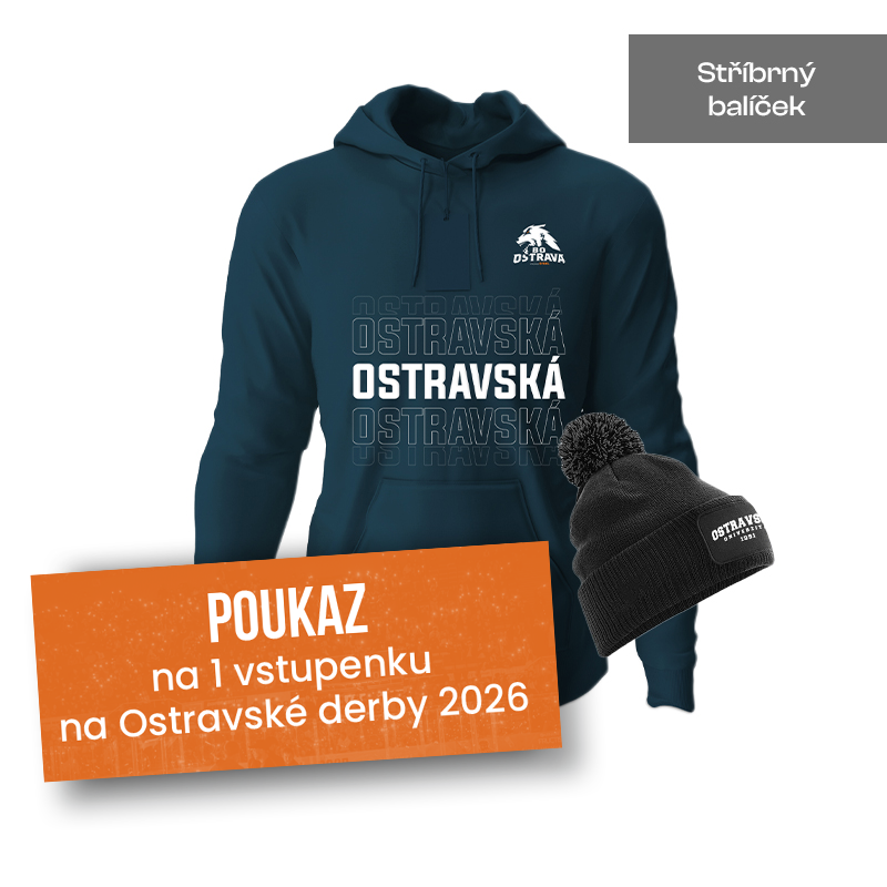 Balíček obsahuje: Mikina Ostravská, Kulich a 1x Vstupenku na Ostravské hokejové derby 2026. Původní cena: 1 100,-